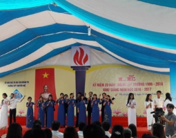 Thầy cô kính yêu!Các bạn học sinh khối 12 thân mến!  Ba năm quãng thời gian không hẳn là dài, nhưng cũng đủ biến tất cả nơi đây thành kỉ niệm… Thầy cô ơi! Những bông hoa phượng đã nở đỏ thắm cả sân…